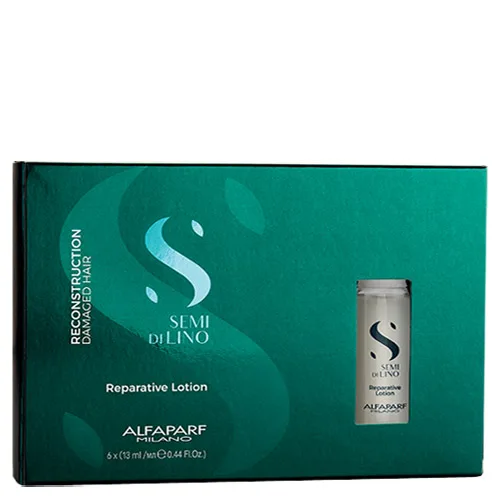 The Alfaparf Semi di Lino Reconstruction Reparative Lotion is an intensive leave-in treatment that will eliminate frizz while taming those flyaways. Each vial contains one treatment. You will see instant smoothness and shine as fly-away hair is eliminated! The Alfaparf Semi di Lino Reconstruction Reparative Lotion is ideal for damaged and brittle hair strands as it helps to repair, strengthen, and reconstruct the hair fiber. It uses a gradual intake of agents that work to help the hair fiber gain body, shine, and structure. It uses four unique complexes to protect and revitalize hair strands. The Color Fix Complex protects and prolongs hair color, while the Shine Fix Complex gives strands long-lasting shine and a glossy finish. The Urban Defense Pro protects hair from environmental pollutants, while the Bamboo Marrow and Cortex Repair Complex gives strength and flexibility to the hair. They repair damaged hair and add moisture and hydration. The Alfaparf Semi di Lino Reconstruction Reparative Lotion can be used alone or paired with your favorite Alfaparf mask.