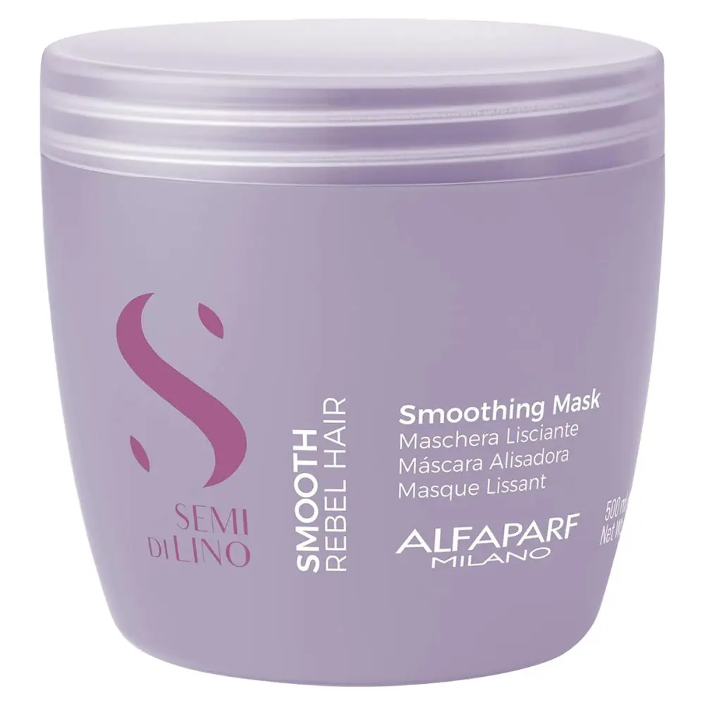 Tame your rebellious hair with the Alfaparf Semi Di Lino Smoothing Mask. This vegan soothing mask gives your hair incredible slip and glide when rinsing and provides rich texture as well. The Alfaparf Semi di Lino Smooth Smoothing Mask provides hair with intense detangling while leaving hair strands soft and ultra-hydrated. This mask protects hair against frizz, heat, and humidity and gives hair control and extraordinary softness. It works to align the hair fiber and counteract frizz that is caused by humidity, instantly restoring the hair's natural beauty. The Alfaparf Semi di Lino Smooth Smoothing Mask contains unique complexes and ingredients that help to protect and revive hair strands. The Color Fix Complex uses a UV filter and antioxidants to protect and prolong color vibrancy, while the Shine Fix Complex gives hair extraordinary shine with the help of flax seed extract. The Urban Defense Pro protects the hair fiber from pollutants and heavy metals by forming a barrier around the hair shaft. The Frizz Defeat Protein is a plant-derived active ingredient that protects and repairs frizzy hair, helping to leave each hair strand soft and tamed. It makes brushing your hair easier, speeds up your drying time, and keeps strands smooth without weighing them down. Lastly, the Climate-Proof Complex provides a protective barrier around the hair. This active ingredient keeps hair hydrated and protected from climate conditions due to humidity and temperature. This complex gives strands a silky feel and 7-day non-stop hydration and 72 hours of frizz control, even at 98% humidity!