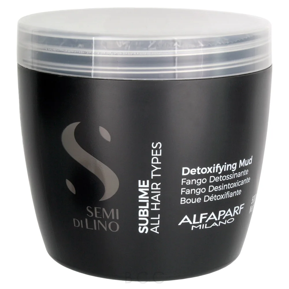Pre-shampoo your hair with this deep, purifying treatment, the Alfaparf Semi di Lino Sublime Detoxifying Mud. Deeply cleanses and purifies the hair and scalp to allow shine to conquer pollution damage to rediscover your hair's extraordinary beauty. Delivers 24-hour brightening power from the roots to the ends and provides UV filters and antioxidants to prolong the beauty of color. Hair is left enhanced with radiance and glowing with shine. This professional mud detox hair treatment gently removes impurities and absorbs toxic substances resulting from product build-up, pollution, and hard water. The cleansing clay treatment gives a wonderful sensation of freshness and leaves hair feeling radiant and revitalized.