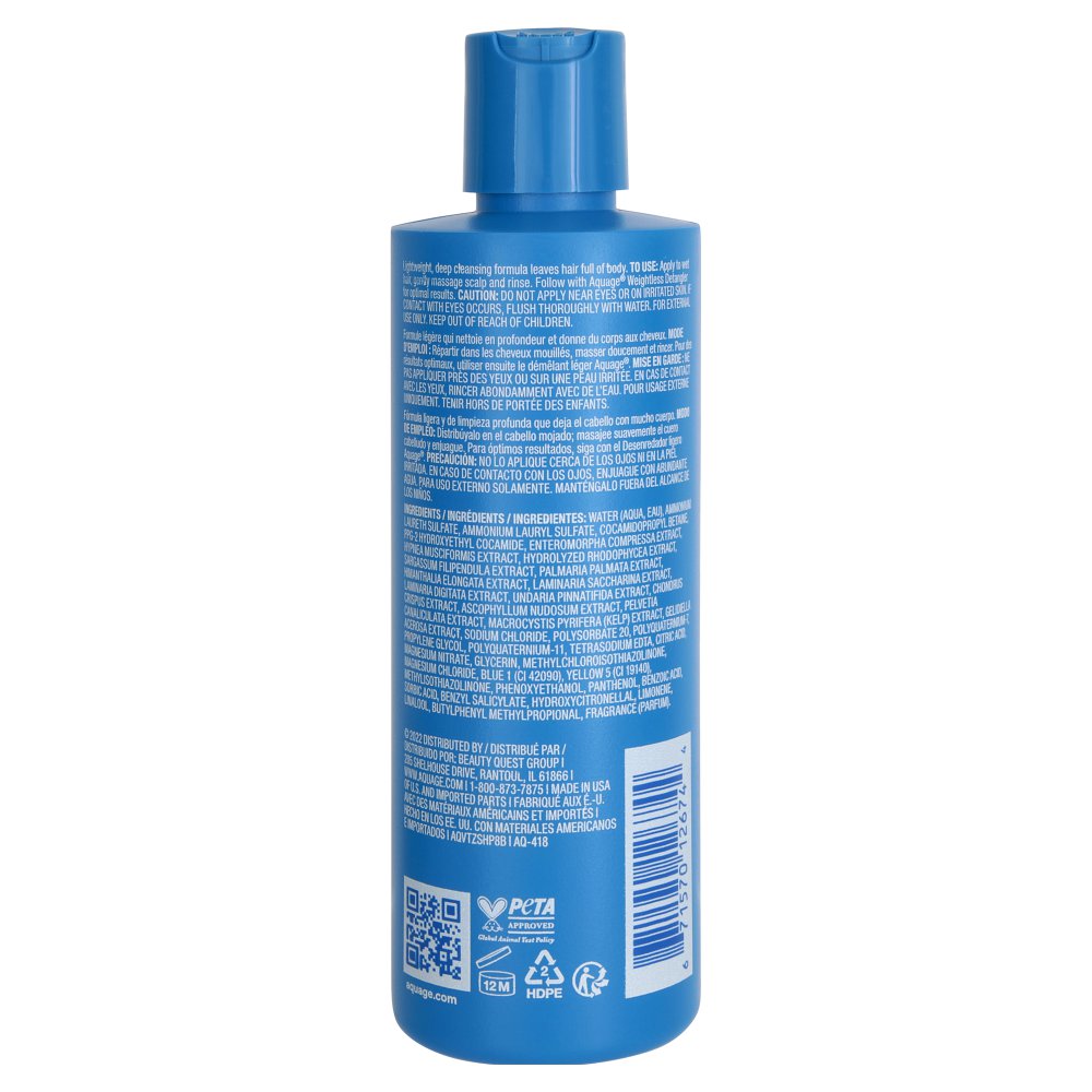 After applying to wet hair, gently massage the hair and scalp evenly. Rinse thoroughly, repeat if desired. Follow with appropriate Aquage conditioner