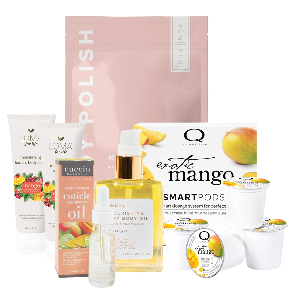 The Qtica Smart Spa SmartPods - Exotic Mango is your perfect at-home pedi in a box! This set features a soak, sugar scrub, moisture mask, and lotion to give you the opportunity to give yourself the best pedicure experience you've ever had! The Qtica Smart Spa SmartPods - Exotic Mango features a delicious Mango scent that will transport you to a tropical paradise.