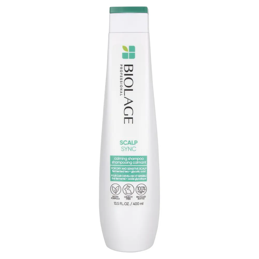 The Biolage Scalp Sync Calming Shampoo is an ultra-gentle shampoo that is ideal for those with dry and sensitive scalps. This shampoo gently cares for both the hair and scalp, leaving strands smooth and more manageable, and the scalp looking and feeling healthier than ever before. It is infused with key ingredients glycolic acid and fermented black and green tea, to care for the scalp. Fermented black and green tea provides the hair and scalp with powerful antioxidants and anti-inflammatory properties that help to instantly calm irritation and reduce itchiness. Glycolic Acid is a gentle exfoliant and actively helps to increase cell turnover, helping to instantly remove product buildup and dead skin cells. Additionally, glycolic acid boosts the hair's internal moisture levels to promote healthier hair strands.