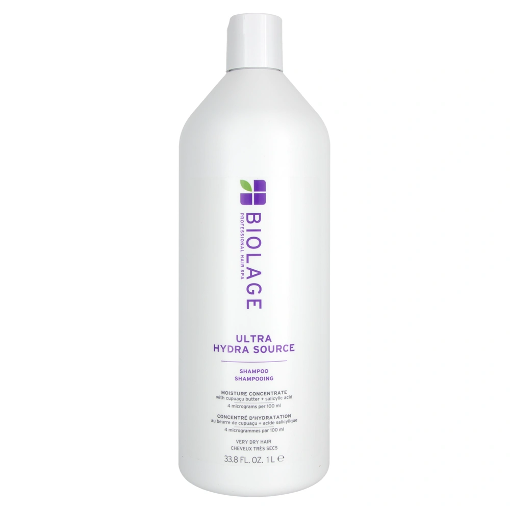 The Biolage Ultra Hydra Source Shampoo is an intense moisturizing shampoo that not only effectively cleanses the hair but also leaves it feeling incredibly moisturized, irresistibly soft, and remarkably shiny. Enriched with the goodness of aloe, apricot kernel oil, and cupuacu butter, this unique formula ensures a gentle yet thorough cleansing process while infusing deep hydration. Aloe vera adds incredible hydration and is great for scalp health and promotes hair growth. Apricot Kernel Oil is rich in nutrients like fatty acids and vitamin E which nourish the hair and help maintain its health and shine while helping to strengthen hair. Lastly, Cupuacu Butter which adds deep conditioning, frizz control, and natural shine to overly dry hair strands. Say hello to hair that's not only clean but also brimming with a newfound vitality and lustrous beauty.