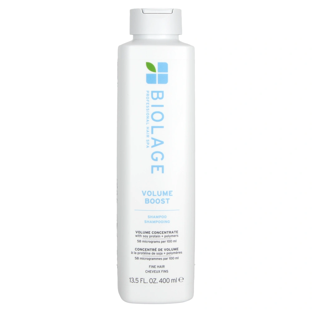 The Biolage Volume Boost Shampoo enhances the appearance and texture of your hair, creating a thicker and fuller feel. Its unique cleansing formula operates gently within the hair strands, contributing to increased volume. The Biolage Volume Boost Shampoo is infused with a concentrated dose of soy protein and polymers to instantly strengthen and plump fine hair strands, without sacrificing the hair's natural softness and shine. With every application, the Biolage Volume Boost Shampoo actively builds volume, much like the blooming of a soft cotton flower in nature. Drawing inspiration from this, the Biolage Volume Boost Shampoo elevates the volume of fine hair, giving hair a sustained and lively bounce. This shampoo effectively boosts volume from root to tip, creating the appearance and feel of fuller hair while retaining essential moisture. The Biolage Volume Boost Shampoo features a vegan and cruelty-free formula that doesn't include parabens or artificial colorants.