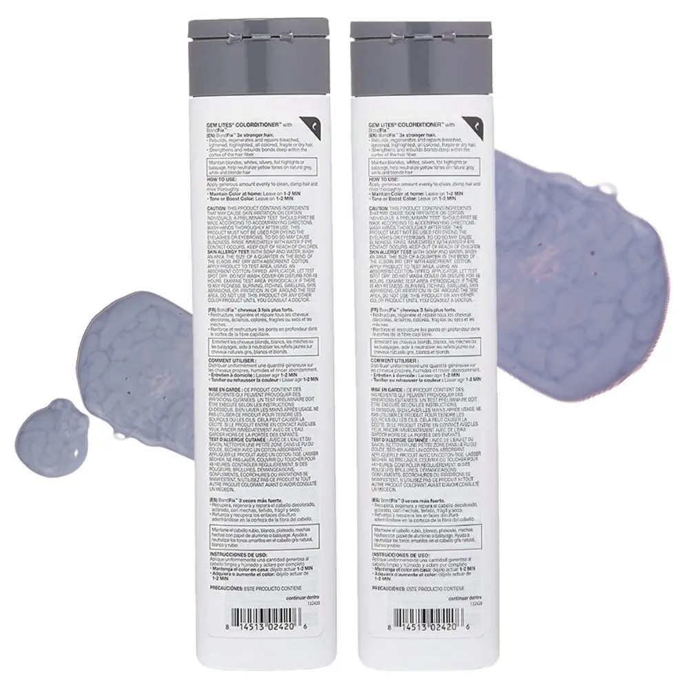 The Celeb Luxury Gem Lites Flawless Diamond Healthy Color Duo is designed to eliminate any unwanted yellow tones that can appear in your color after a few washes after your color service. This set works best on hair that is pre-lightened to the platinum, pale blonde, and lightest blonde levels. This shampoo and conditioner combo refreshes and maintains your color in as little as 2-5 minutes and can be used daily if needed! The Celeb Luxury Gem Lites Flawless Diamond Healthy Color Duo contains built-in Bond Rebuilders to strengthen, repair, and hydrate your hair with each use. They are crafted with plant-based ingredients such as palm, coconut, and sugar. They are 100% vegan and cruelty-free and are the ideal shampoo and conditioner combo for bleached and color-treated blondes.