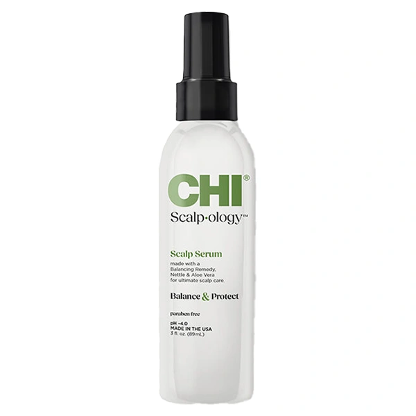 The CHI Scalp-ology Scalp Serum is formulated with a potent blend of botanicals and clinically proven actives that are designed to restore, reinforce, and fortify the scalp. The CHI Scalp-ology Scalp Serum is infused with Hydrolyzed Silk, Biotin, Aloe Vera, Nettle, and the Rednesyl Complex. Hydrolyzed Silk and Biotin help to strengthen strands, while Aloe Vera provides intense nourishment and hydration. Nettle extract is a natural purifying and detoxifying ingredient that helps to clear away scalp buildup. Lastly, the CHI Scalp-ology Scalp Serum uses CHI's Rednesyl Complex, a blend of Salicylic Acid, Undecylenic Acid, and Arginine, which helps to balance and protect the scalp from environmental stressors. This scalp serum fortifies the scalp and leaves you with the perfect foundation for healthier hair strands.
