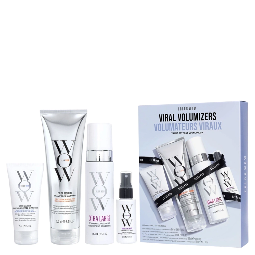 The Color Wow Viral Volumizers Holiday Kit has everything your hair needs to be healthy and voluminous! This holiday set features the Color Wow Color Security Shampoo and Color Security Conditioner - Fine-to-Normal Color-Treated Hair, the Raise the Root - Thicken + Lift Spray, and the Xtra Large Bombshell Volumizer. This volumizing hair set will take your holiday hair to the next level!