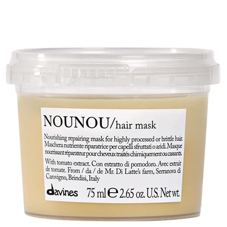 The Davines NouNou/ Hair Mask is an ultra-reparative hair mask designed for those with bleached, permed, or relaxed hair strands. This hair mask helps restore hair's hydration and body while providing strands with in-depth nourishment. The Davines NouNou/ Hair Mask leaves hair strands silky and smooth, without weighing hair strands down. This deeply nourishing hair treatment is enriched with vitamin E to provide hair strands with antioxidant power, as well as tomato extract that is sourced from the farm of Mr. Mario di Latte in Serranova, di Carovigno, Brindisi, as a part of Slow Food Presidia. These tomatoes are full of antioxidants and Vitamin C, which restore and invigorate hair. The Davines NouNou/ Hair Mask is both vegan and cruelty-free and leaves hair nourished and well-protected.