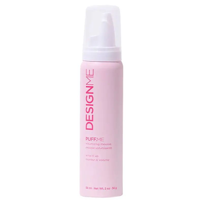 The Design Me Puff.Me Volumizing Mousse provides a flexible hold, lift, & movement. Its added benefits include protection against humidity, UV shielding, and heat protection, and is highly conditioning for the hair as well! This never-stiff or sticky formula is excellent for all hair types. Puff.Me Mousse has the same scent and performance as the original Lift.Me Volumizing Mousse. The scent experience includes notes of tonka beans, black cherries, and almonds. This mousse is infused with Vitamin E and Panthenol to keep your hair strands healthy while leaving them with unmatched volume. Panthenol, or provitamin B5 helps to moisturize and soothe hair strands for an ultra-smooth and frizz-free finish. Vitamin E is infused with antioxidants that help to boost hair elasticity and shine, making strands less prone to breakage.