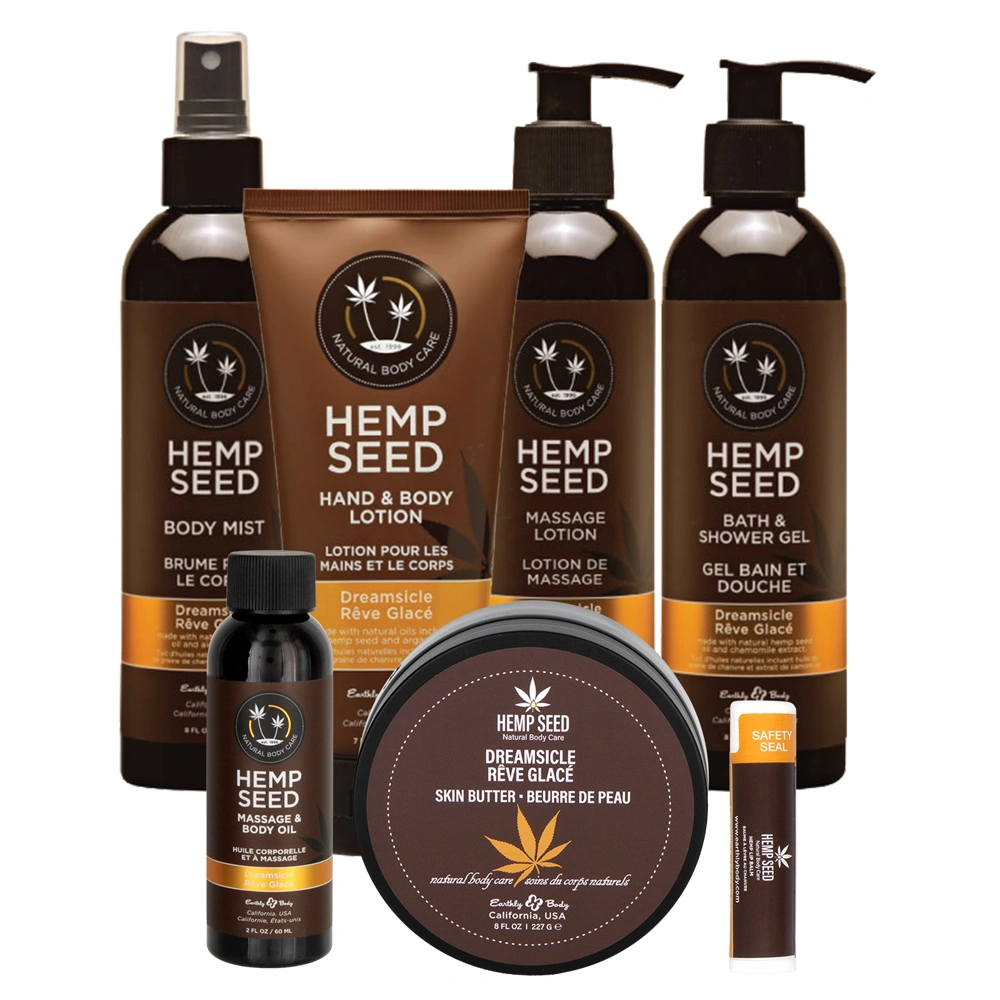 Earthly Body Hemp Seed Bath & Shower Gel 8 oz - Dreamsicle: Water/Aqua/Eau, Sodium Lauroyl Methyl Isethionate, Disodium Laureth Sulfosuccinte, Cocamidopropyl Betaine, Glycerin, Fragrance, Sodium PCA, Hydrolyzed Wheat Protein, Panthenol, (Hemp) Seed Oil, Tocopheryl Acetate, Aloe Barbadensis Leaf Juice, Symphytum Officinale (Comfrey) Leaf Extract, Pyrus Malus (Apple) Fruit Extract, Chamomilla Recutita (Chamomile) Extract, Trifolium Pratense (Red Clover) Flower Extract, Taraxacum Officinale (Dandelion) Extract, Sambucus Nigra (Elder Flower) Extract, Foeniculum Vulgare (Fennel) Extract, Pyrus Cydonia (Quince) Seed Extract, Althaea Officinalis (Marsh Mallow) Root Extract, Ulmus Fulva (Slippery Elm) Bark Extract, Porphyra Yezoensis (Nori) Extract, Glycyrrhiza Glabra (Licorice) Root Extract, Avena Sativa (Oat) Kernel Extract, Citrus Aurantium Amara (Orange Blossom) Extract, Citrus Aurantium Dulcis (Orange) Peel Extract, Viola Tricolor (Pansy) Extract, Prunus Persica (Peach) Kernel Extract, Oenothera Bienis (Evening Primrose) Extract, Achillea Millefolium (Yarrow) Extract, Carum Petroselium (Parsley) Extract, Viola Odorata (Violet) Flower Extract, Galium Aparine (Cleavers) Extract, Capsicum Frutescens Fruit Extract, Panax Ginseng Root Extract, PEG-150 Distearate, Sodium Chloride, Ethylhexylglycerin, Phenoxyethanol