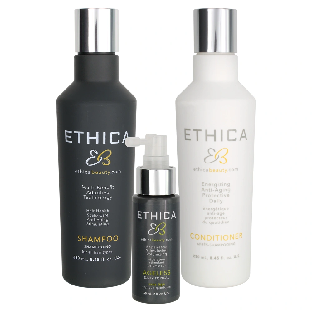 Anti-Aging Daily Shampoo: aqua/water/eau, sodium lauroyl methyl isethionate, disodium cocoyl glutamate, potassium cocoylglycinate, cocamidopropyl hydroxysultaine, sodium lauroyl sarcosinate, potassium cocoate, decyl glucoside, glycereth-26, sodium cocoyl glutamate, emu oil, caffeine, arctium majus root extract, panax ginseng root extract, cocamidopropylamine oxide, phenoxyethanol, taurine, zinc gluconate, niacinamide, ornithine hcl, hydrolyzed vegetable protein, methyl gluceth-20, arginine, piroctone olamine, peg-120 methyl glucose dioleate, glucosamine hcl, vitis vinifera seed extract, dimethyl sulfone, serenoa serrulata fruit extract, glycol distearate, acetic acid, biotin, polyquaternium-10, amodimethicone, hydrolyzed soy protein, glucosamine hcl, guarhydroxypropyltrimonium chloride, chlorphenesin, aspalathus linearis leaf extract, trisodium ethylenediamine disuccinate, hydrolyzed vegetable protein pg-propyl silanetriol, panthenol, trehalose, c11-15 pareth-7, laureth-9, geraniol, inositol, panthenyl ethyl ether, tetrasodium edta, undeceth-11, undeceth-5, potassium sorbate, butyloctanol, disodium edta, peg-40 hydrogenated castor oil, sodium benzoate, tocopherol, acetyl cysteine, acetyl methionine, lactose, milk protein, sodium citrate, acetyltyrosine, trideceth-12, silicone quaternium-16, citrulline, peg-12 dimethicone, maltodextrin, calcium pantothenate, diethyl phthalate, c12-13 pareth-3, linalool, limonene, divinyldimethicone/dimethicone copolymer, glycerin, polyquaternium-11, c12-13 pareth-23, alcohol, iodopropynyl butylcarbamate, disodium succinate, parfum, alcohol denat., citric acid