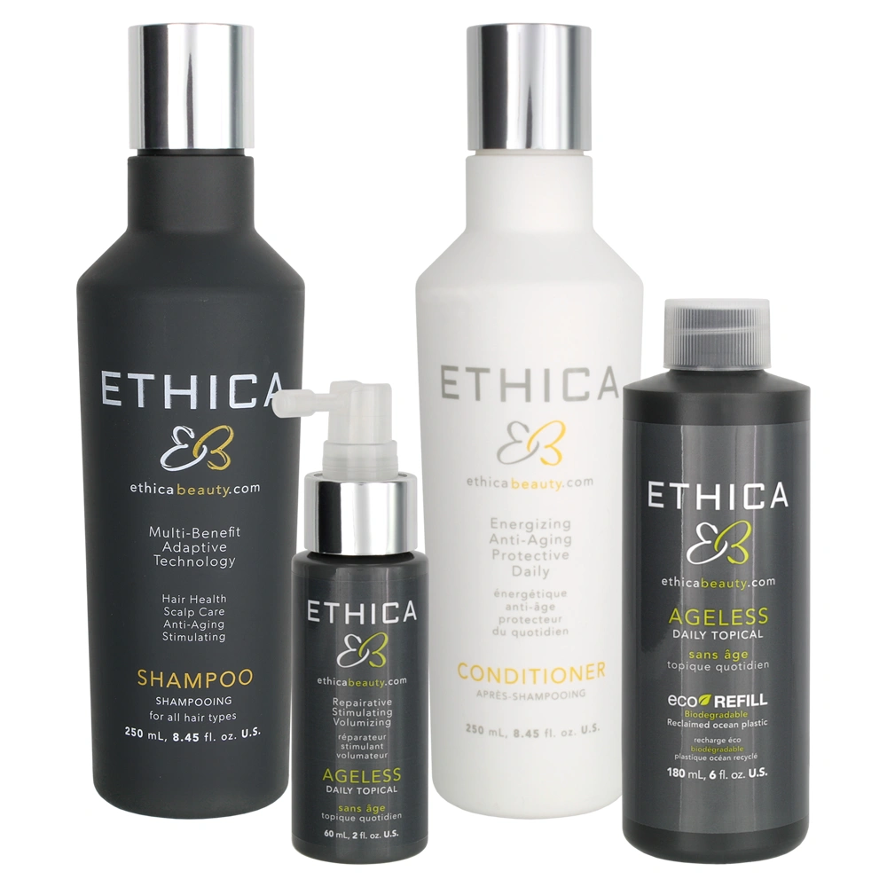 Anti-Aging Daily Shampoo: aqua/water/eau, sodium lauroyl methyl isethionate, disodium cocoyl glutamate, potassium cocoylglycinate, cocamidopropyl hydroxysultaine, sodium lauroyl sarcosinate, potassium cocoate, decyl glucoside, glycereth-26, sodium cocoyl glutamate, emu oil, caffeine, arctium majus root extract, panax ginseng root extract, cocamidopropylamine oxide, phenoxyethanol, taurine, zinc gluconate, niacinamide, ornithine hcl, hydrolyzed vegetable protein, methyl gluceth-20, arginine, piroctone olamine, peg-120 methyl glucose dioleate, glucosamine hcl, vitis vinifera seed extract, dimethyl sulfone, serenoa serrulata fruit extract, glycol distearate, acetic acid, biotin, polyquaternium-10, amodimethicone, hydrolyzed soy protein, glucosamine hcl, guarhydroxypropyltrimonium chloride, chlorphenesin, aspalathus linearis leaf extract, trisodium ethylenediamine disuccinate, hydrolyzed vegetable protein pg-propyl silanetriol, panthenol, trehalose, c11-15 pareth-7, laureth-9, geraniol, inositol, panthenyl ethyl ether, tetrasodium edta, undeceth-11, undeceth-5, potassium sorbate, butyloctanol, disodium edta, peg-40 hydrogenated castor oil, sodium benzoate, tocopherol, acetyl cysteine, acetyl methionine, lactose, milk protein, sodium citrate, acetyltyrosine, trideceth-12, silicone quaternium-16, citrulline, peg-12 dimethicone, maltodextrin, calcium pantothenate, diethyl phthalate, c12-13 pareth-3, linalool, limonene, divinyldimethicone/dimethicone copolymer, glycerin, polyquaternium-11, c12-13 pareth-23, alcohol, iodopropynyl butylcarbamate, disodium succinate, parfum, alcohol denat., citric acid