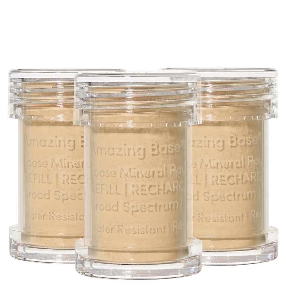 Get great coverage and protection with the Jane Iredale Amazing Base Brush Refill Pack. This 3 piece refill pack is specifically for your Amazing Base Refillable Brush so you can continue to get great coverage even on the go! Formulated with highly absorbent rice starch, Jane Iredale Amazing Matte Loose Finish Powders are perfect for faces with excessive shine. These convenient refill canisters are fully recyclable!