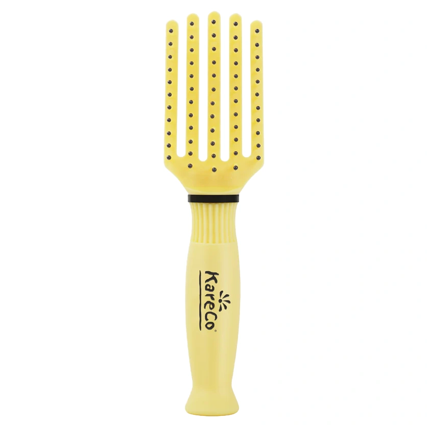 The KareCo Tangle Buster Detangler Tiny is an incredible detangling brush that is designed for life on the go! This detangling brush gently detangles all hair types and textures and features a curved paddle platform that flexes and bends to remove knots from the hair, while additionally providing a gentle scalp massage. The KareCo Tangle Buster Detangler Tiny works best on moisturized and wet hair, and is ideal for all hair types and textures, including curls 1-4 C. This brush is ideal for traveling and is kid-friendly! The KareCo Tangle Buster Detangler Tiny fits easily into your travel bag, purse, or backpack so you can easily care for your hair at home or away!