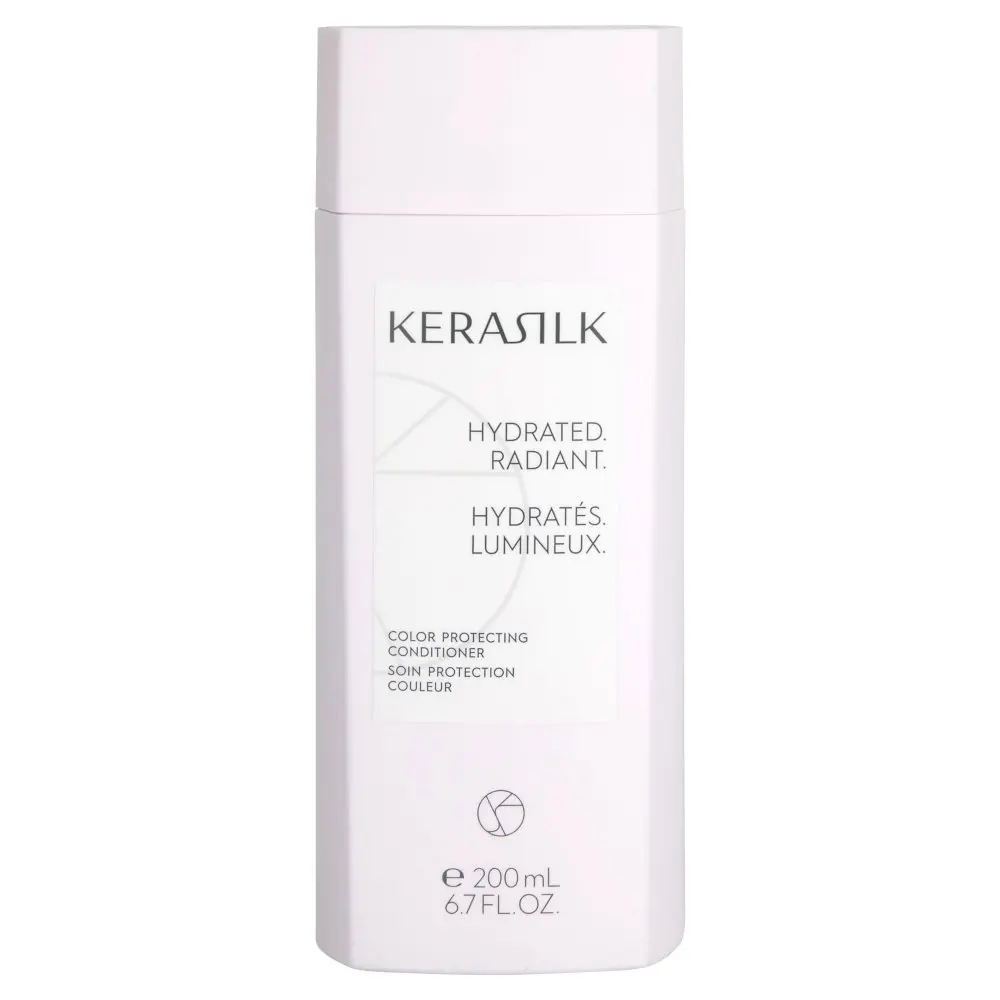 The Kerasilk Color Protecting Conditioner is formulated without dyes, silicones, sulfates, mineral oil, or microplastics, and has a vegan formula. Ideal for color-treated and lightened hair, all hair types and textures.