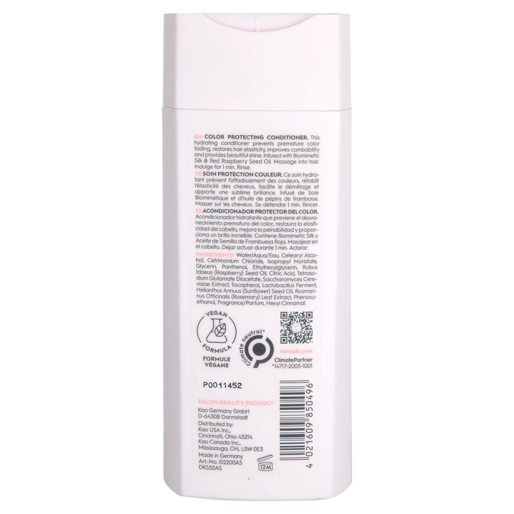 Help lock in your color for a fresh-from-the-salon look longer with the Kerasilk Essentials Color Protecting Conditioner. This hydrating conditioner is infused with Biomimetic Silk & Red Raspberry Seed Oil. Red Raspberry Seed Oil helps prevent moisture loss in hair and also helps to mend split ends. While Biomimetic Silk helps to repair and protect hair from pollution and harmful UV rays that tend to dull color over time. This 100% vegan color conditioner prevents premature color fading, restores hair elasticity, and improves combability for hair with vibrant color and beautiful shine.