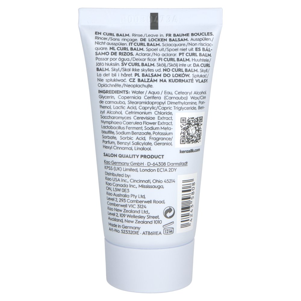 Create long-lasting curls with the Kerasilk Specialists Curl Balm. Designed for curly hair textures, this ultra-rich curl balm bundles, smooths, tames and activates curls and coils and helps to keep them free of frizz. Infused with Kerasilk's Silk+ Technology which combines Biomimetic Silk with curl-enhancing Carnauba Wax for beautiful held-together curls. Biomimetic Silk has replenishing amino acids that heal hair from the inside out. Carnauba Wax is smoothing and softening to the hair. It also enhances and intensifies's shine and creates a protective layer on the hair to protect and shield it against moisture loss and shields it from the effects of humidity in the air while at the same time providing light, natural grip, and hold.