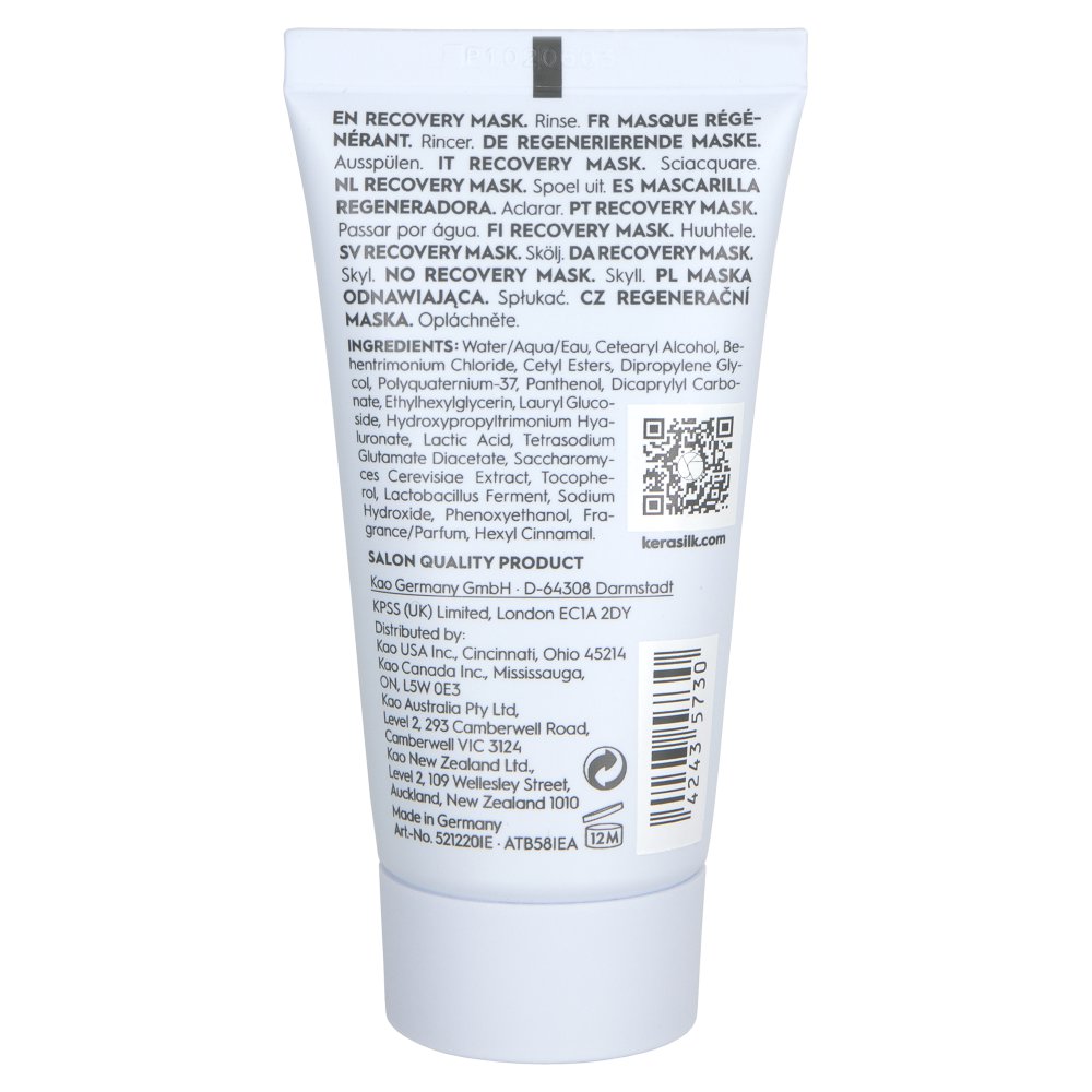 The Kerasilk Recovery Mask is formulated without dyes, silicones, sulfates, mineral oil, or microplastics, and has a vegan formula.