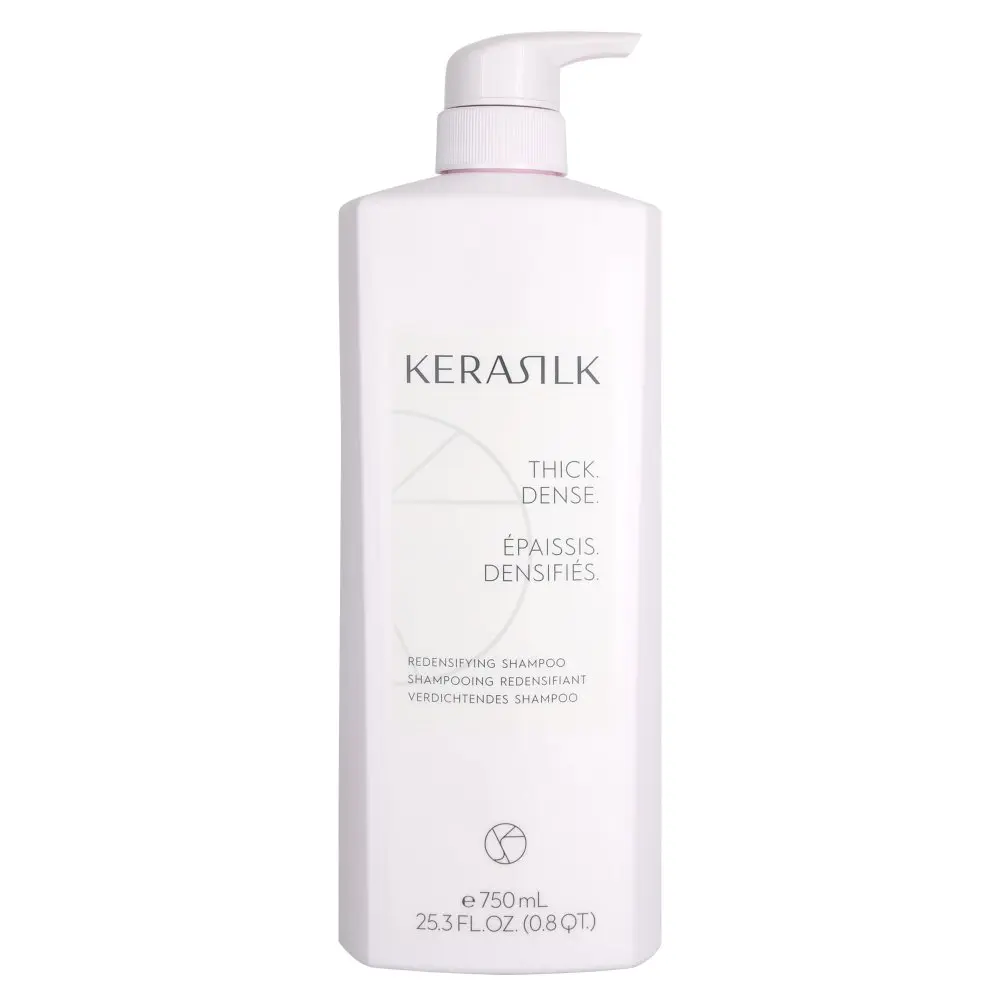 The Kerasilk Redensifying Shampoo is formulated without silicones, sulfates, mineral oil, or microplastics, and has a vegan formula.