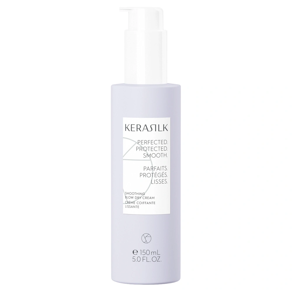 Create sleek and smooth blowouts with the Kerasilk Smoothing Blow Dry Cream. This hair cream is designed to help transform unruly hair into smooth styles with up to 71% less frizz! The Kerasilk Smoothing Blow Dry Cream provides your style with humidity protection for up to 72 hours, thermal protection, ignites three times the shine and leaves each and every hair strand with a soft and silky feel. This blowout cream is infused with Biomimetic Silk and Shea Oil and is 100% vegan and cruelty-free. Biomimetic Silk has replenishing amino acids that heal hair from the inside out. Biomimetic Silk additionally builds a layer around the hair fiber that protects it from thermally or chemically induced structural damage. Packed full of hair-loving nutrients and fatty acids, Shea Oil helps to deeply condition your hair, adds incredible frizz control, and adds volume. Shea Oil can also help with scalp inflammation and irritation.
