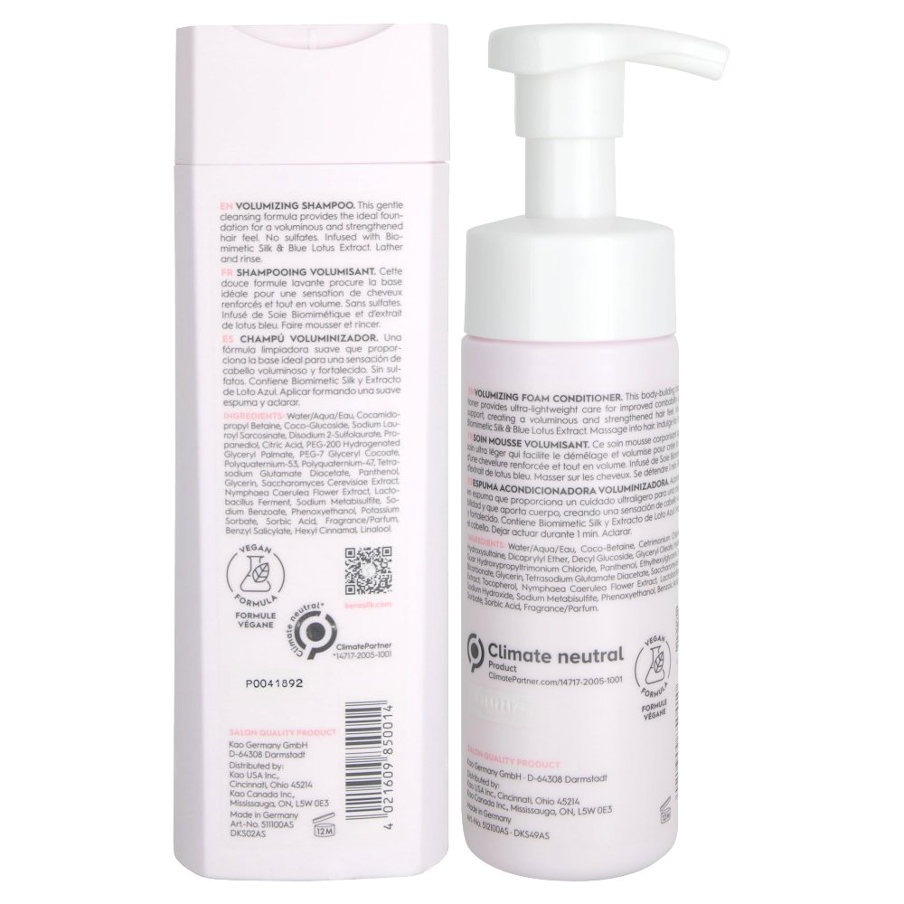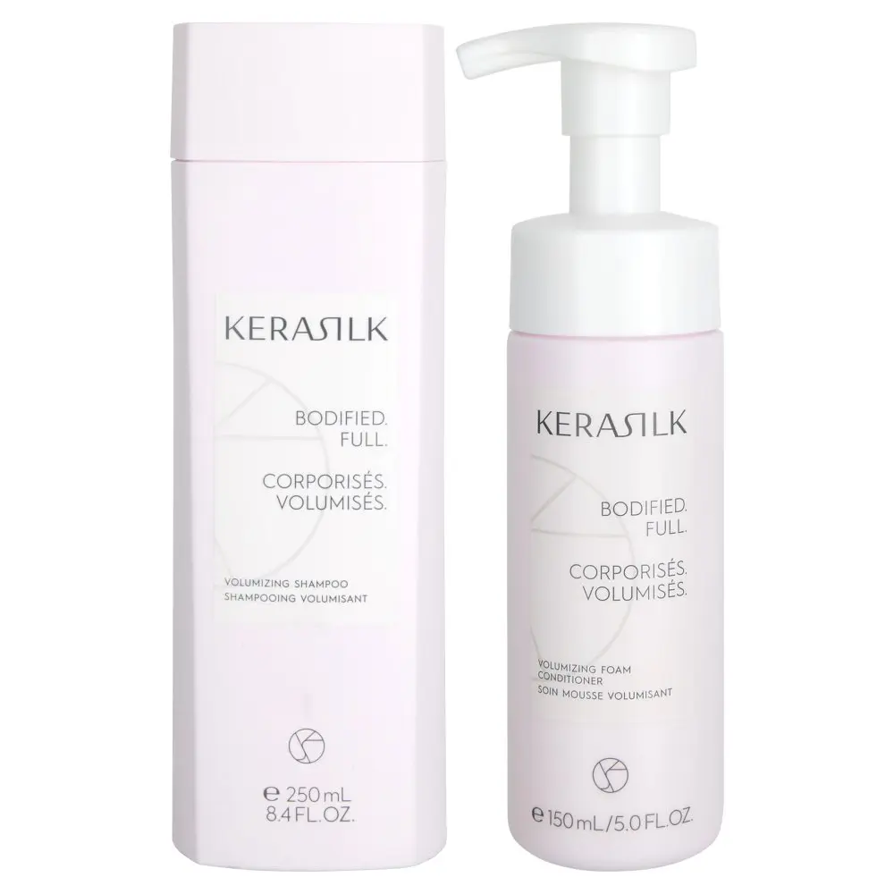 The Kerasilk Volumizing Shampoo & Foam Conditioner Duo is formulated without dyes, silicones, sulfates, mineral oil, or microplastics, and has a vegan formula.