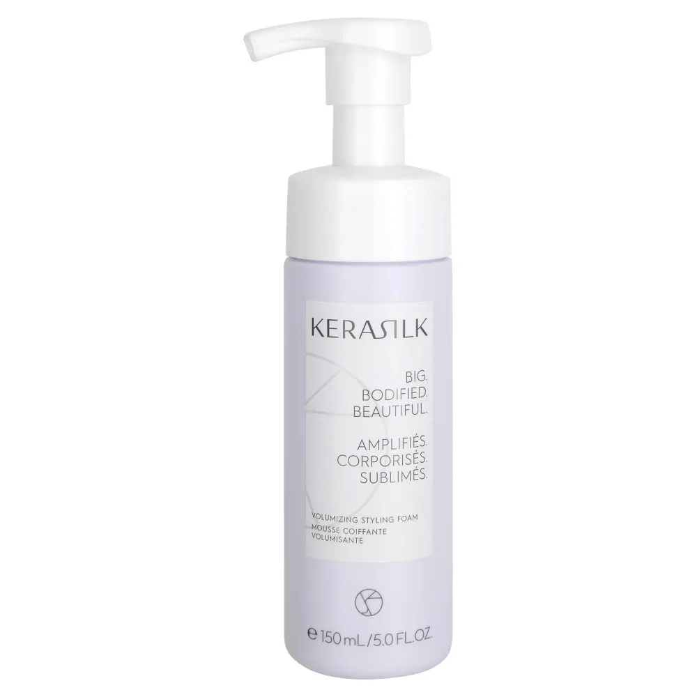 The Kerasilk Volumizing Styling Foam is formulated without silicones, sulfates, mineral oil, or microplastics, and has a vegan formula. Ideal for all hair types and textures.