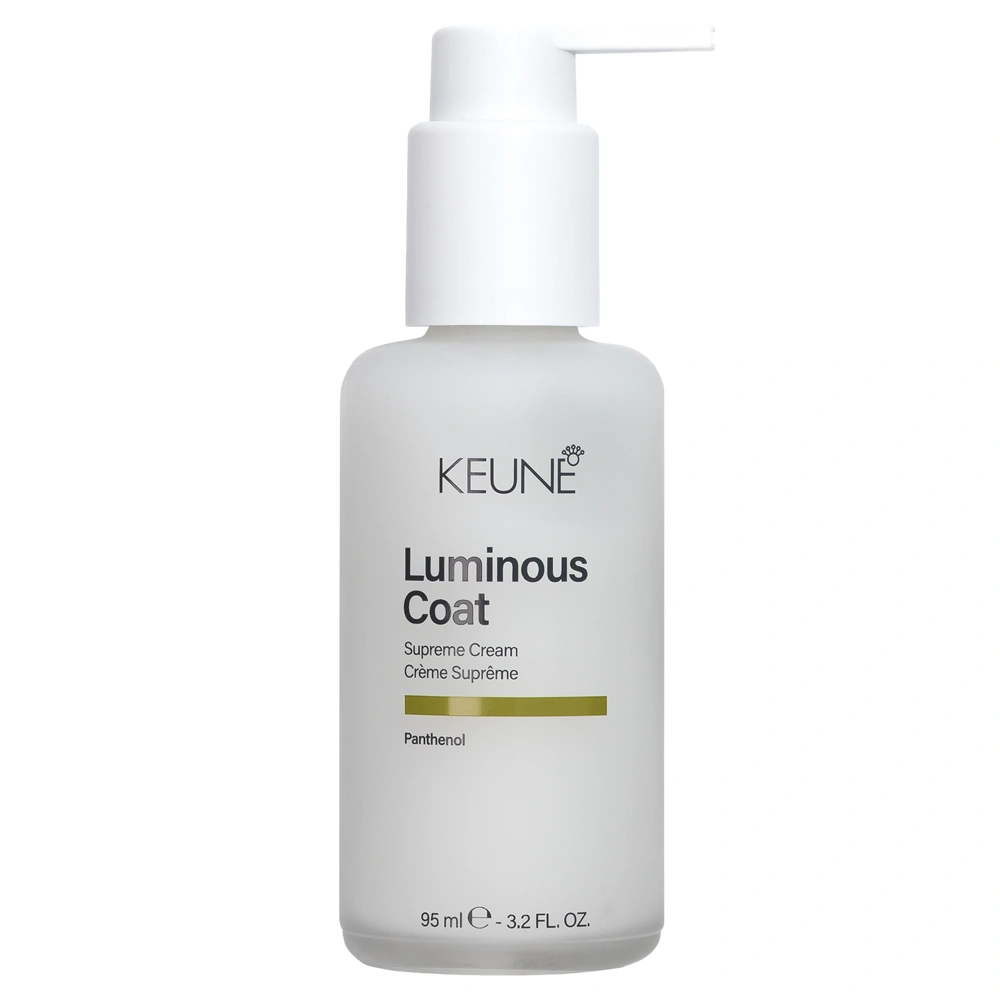 The Keune Luminous Coat Supreme Cream is a deeply nourishing hair cream that is ideal for dull hair strands looking for incredible reparative benefits and luminous shine. This hair cream is designed to reinforce, smooth, and protect each and every hair strand and leave them incredibly conditioned. The Keune Luminous Coat Supreme Cream is infused with Keune's Fiber Sealing Technology and Panthenol. Panthenol, or Pro-Vitamin B5, is an incredible humectant that deeply penetrates into the hair shaft and delivers intense hydration, improves elasticity, and strengthens the hair. This key ingredient reduces hair's dryness and smooths the hair's surface, and enhances hair's natural shine levels. Keune's Fiber Sealing Technology is a specialized silicone copolymer that provides hair with multifunctional benefits. This technology is designed to reinforce, smooth, and protect the hair while sealing the hair fiber to reduce damage and split ends. The Fiber Sealing Technology binds to damaged areas of the hair to form a flexible, breathable, and protective layer, restoring hair's shine and strength. The Keune Luminous Coat Supreme Cream is ideal for dull hair and leaves hair with an aromyhrr fragrance of aromatic floral with a deep musky base that is elevated with hints of juniper and incense.