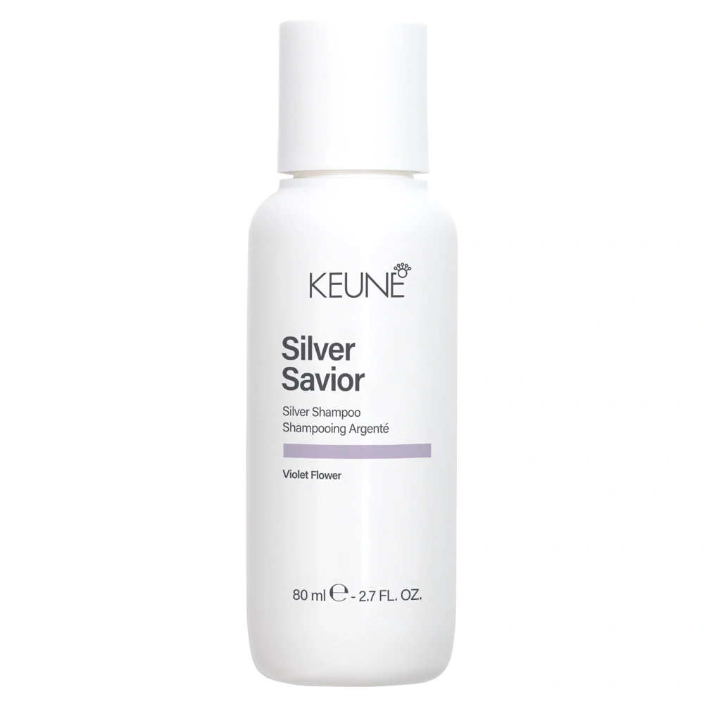 The Keune Silver Savior Silver Shampoo is a violet-based neutralizing shampoo that is expertly formulated to cleanse hair, while correcting yellow and warm undertones. This toning shampoo is ideal for those with cool blonde, silver, or platinum hair and harnesses the power of violet pigments and nourishing ingredients. The Keune Silver Savior Silver Shampoo is infused with Bond Fuser Technology and Violet Flower. Violet Flower is naturally rich in color-protecting pigments and helps to counteract yellow and brassy tones. This helps to leave hair bright, cool, and true to tone. This flower additionally provides hair with lightweight hydration to keep strands soft and manageable. Keune's Bond Fuser Technology works at the molecular level to reinforce the hair's internal structure, repair damage, restore strength, and leave hair strong and incredibly resilient. The Keune Silver Savior Silver Shampoo leaves hair clean, cool-toned, and luminous, without drying or dulling the hair. This shampoo features an azure sky fragrance of clean and uplifting cucumber, apple, grapefruit, soft floral notes, as well as sandalwood and amber.