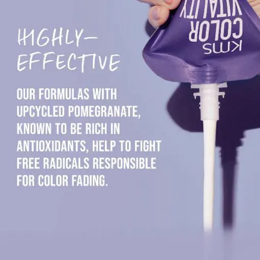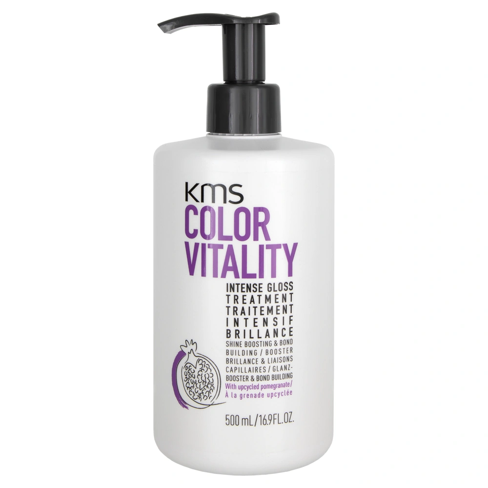 The KMS Color Vitality Intense Gloss Treatment is designed to help infuse dull hair color with incredible shine and vibrancy. This treatment builds both hydrogen and ionic bonds within the hair shaft, creating hair strands that are up to 20 times stronger. Infused with upcycled Pomegranate, the KMS Color Vitality Intense Gloss Treatment fights off free radicals and their damage, ensuring your hair color doesn't fade or dull. This treatment additionally provides the hair with weightless hydration and conditioning, making hair strands four times easier to detangle. The KMS Color Vitality Intense Gloss Treatment features a fragrance of fruity and fresh energizing scent made from red fruits, rose, and cedarwood.