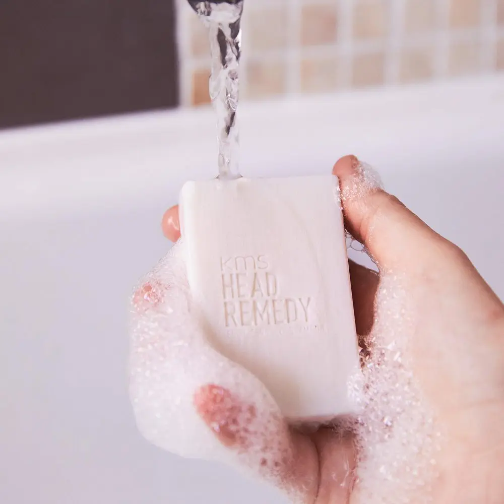 Gently cleanse your sensitive scalp and hair with the KMS Head Remedy Solid Sensitive Shampoo. This gentle shampoo bar is perfect for those with a sensitive scalp to balance and neutralize the pH of your scalp, and is also fragrance-free! Containing 80% natural ingredients, this highly concentrated shampoo bar is designed with the environment in mind. This shampoo will help you conserve water, and reduces packaging waste. This unique solid shampoo addresses the needs of our eco-conscious users, giving you a professional product to keep your hair healthy.