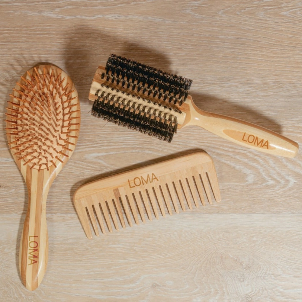 Bamboo is a significant step forward from plastics in reducing our footprint. Bamboo proliferates with little water making it preferable over wood. It is also more durable and lightweight, making detangling your hair manageable and less of an arm workout. Like all of their other ingredients, Loma's bamboo is sustainably sourced and environmentally sound to protect the plant as much as your hair.