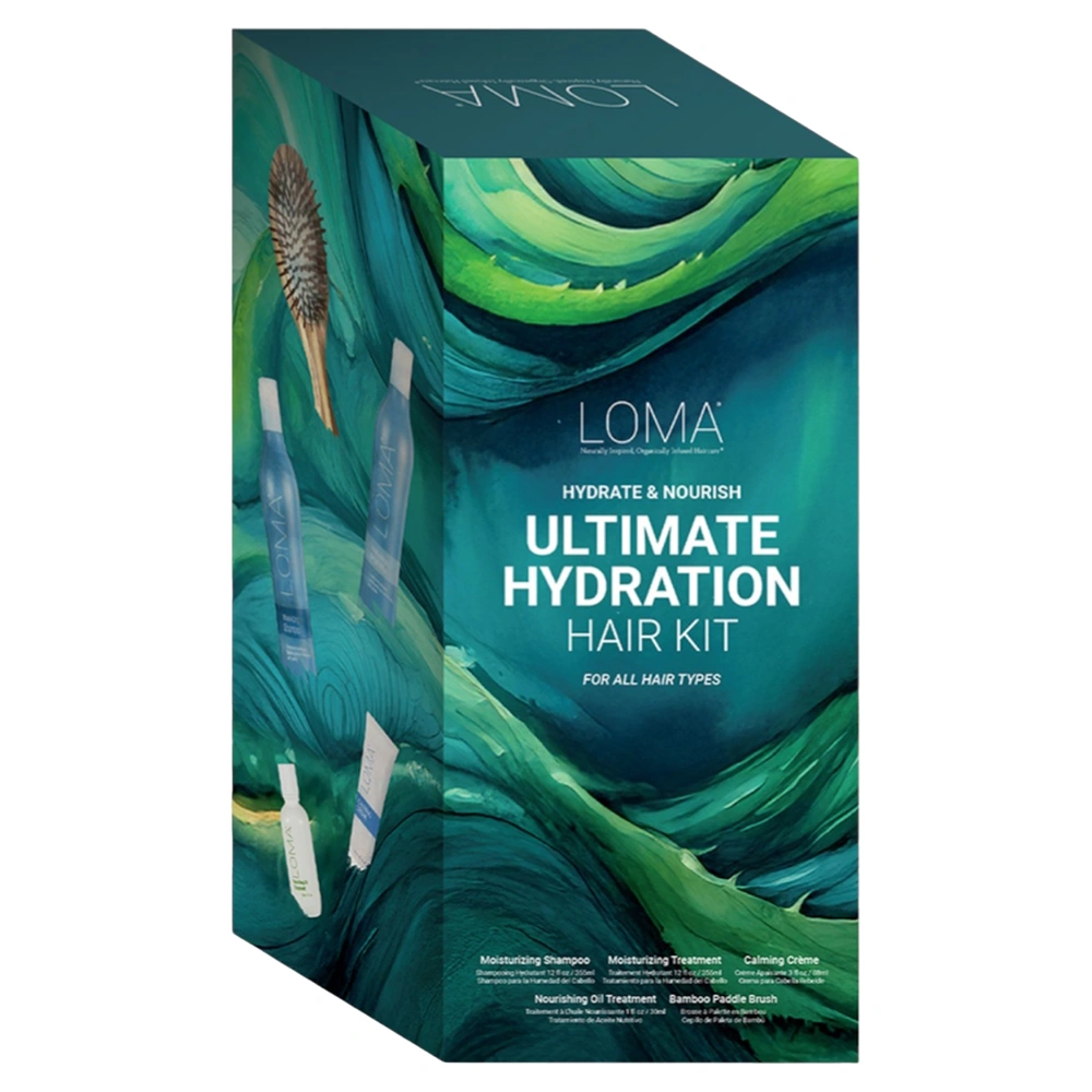 The Loma Ultimate Hydration Hair Kit features the Loma Moisturizing Shampoo, Treatment, Calming Creme, Nourishing Oil Treatment, and their signature Bamboo Oval Paddle Brush to help create incredibly hydrated and healthy hair strands this holiday season.