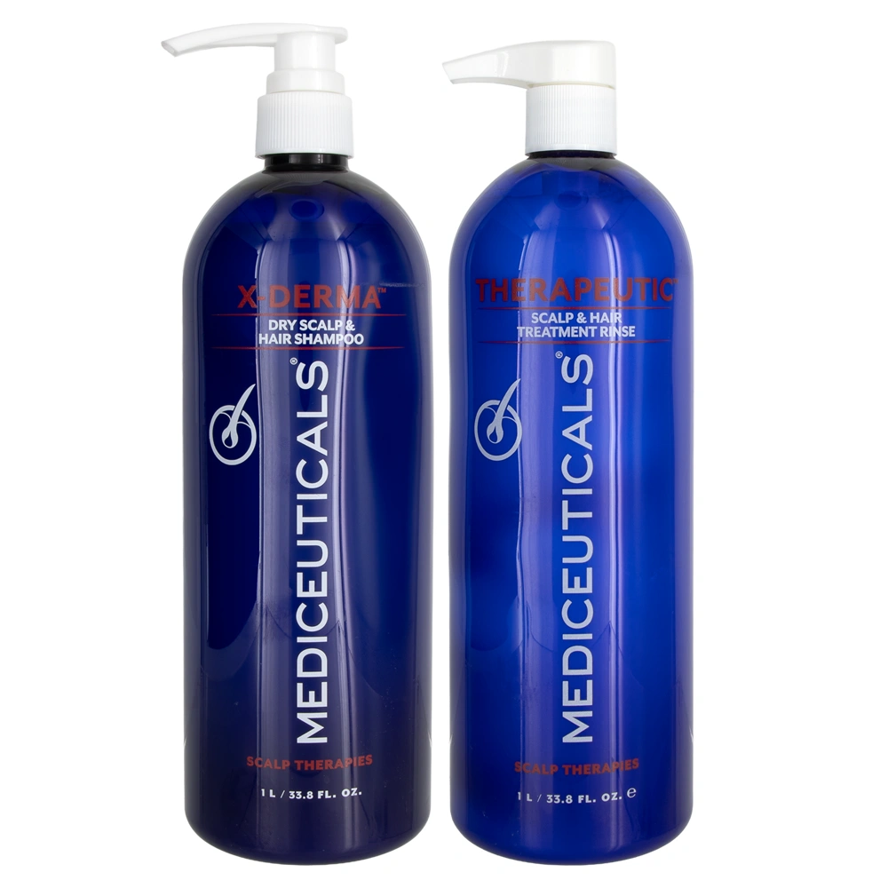MEDIceuticals X-Derma Dry Scalp & Hair Shampoo & Therapeutic Scalp & Hair Treatment Rinse Duo Includes: