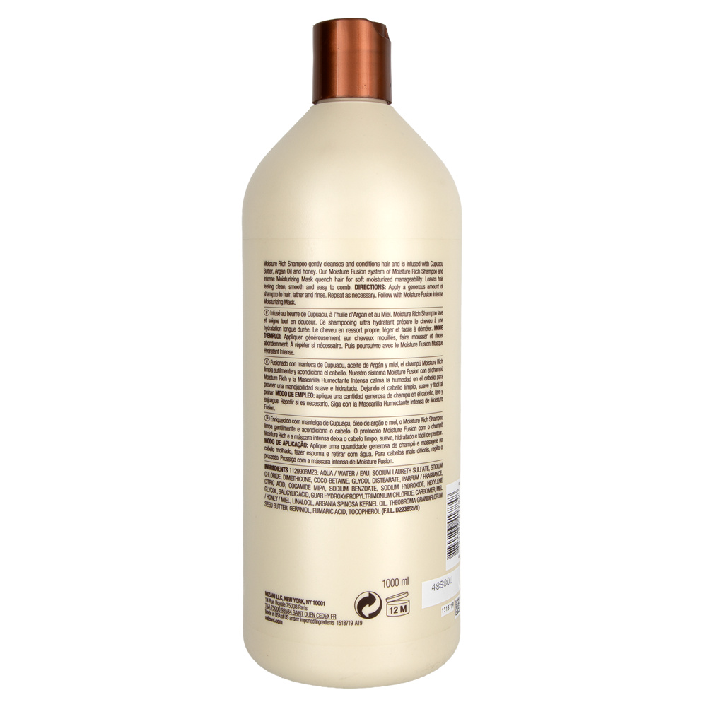 Apply a generous amount of shampoo to hair, lather and rinse. Repeat as necessary. Follow with Moisture Fusion Intense Moisturizing Mask.