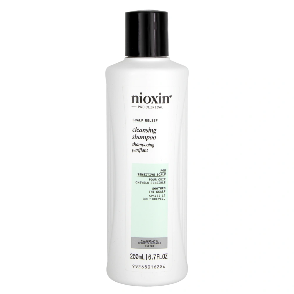 This gentle cleansing shampoo provides immediate relief from the dry itchy scalp while also paraben, sulfate, and artificial coloring free. The NIOXIN Scalp Relief Cleansing Shampoo - For Sensitive Scalp is formulated with Aloe Vera to balance your scalp pH. Balancing your scalp pH helps to alleviate scalp inflammation and discomfort. Aloe Vera is also a great moisturizer for both the hair and scalp, reducing dryness and promoting healthier and more manageable hair strands. This shampoo additionally uses Vitamin E for its antioxidant properties, helping to protect hair from damage caused by environmental factors. Vitamin E can also contribute to improving hair's overall strength and hydration. The NIOXIN Scalp Relief Cleansing Shampoo - For Sensitive Scalp is formulated without parabens, sulfates, and colorants, and features a clean-label fragrance.