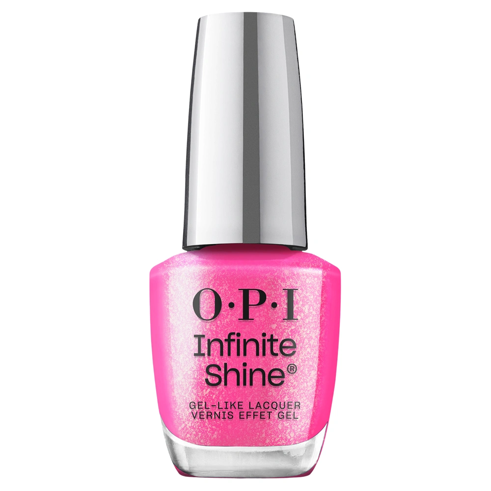 The OPI Infinite Shine - I'm Not Really an Influencer is a bright, semi-sheer hot pink polish that leaves behind a stunning glittering finish. The nail shade is inspired by the iconic OPI shade I'm Not Really a Waitress, which is now serving content! OPI's Infinite Shine nail lacquers are crafted with high-impact pigments that keep the color rich and true to its shade. Prolongs your mani-pedi and gives a beautiful, brilliant shine! The OPI Infinite Shine - I'm Not Really an Influencer is part of the three-step process for OPI's long-lasting nail polish line that provides nails with a gel-like, high-shine finish and up to 11 days of wear time.