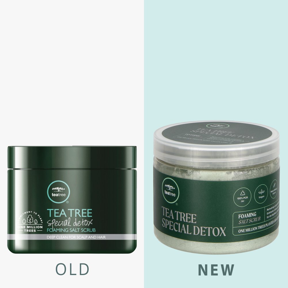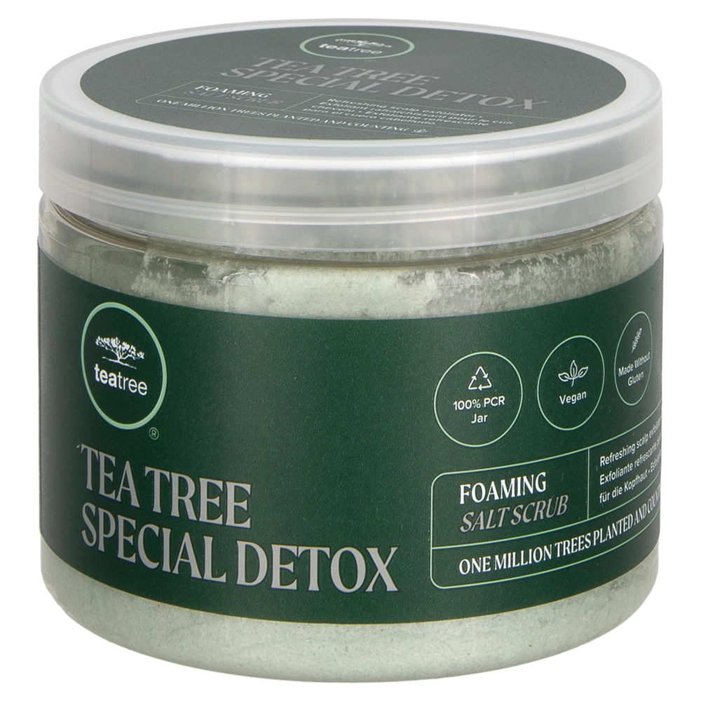 Exfoliate and Refresh your scalp! Paul Mitchell Tea Tree Special Detox Foaming Salt Scrub is a refreshing rich foaming scrub that gently removes grime and build-up. Exfoliate your scalp with a blend of volcanic ash, French green clay, and Himalayan pink salt. Volcanic ash is a powerhouse multitasker that exfoliates while absorbing oil and impurities. It also is packed with potassium and calcium that leaves your scalp clean and fresh. French green clay is a nourishing exfoliator that clarifies the scalp and absorbs excess oils. Himalayan pink salt loosens and demolishes dead skin cells and product build-up. This natural mineral stimulates circulation and balances the ph of the scalp. The energizing scent of tea tree lasts all day long. This rinse is Gluten-Free, Paraben-Free, Sulfate-Free, Vegan, and Safe for Colored Hair.
