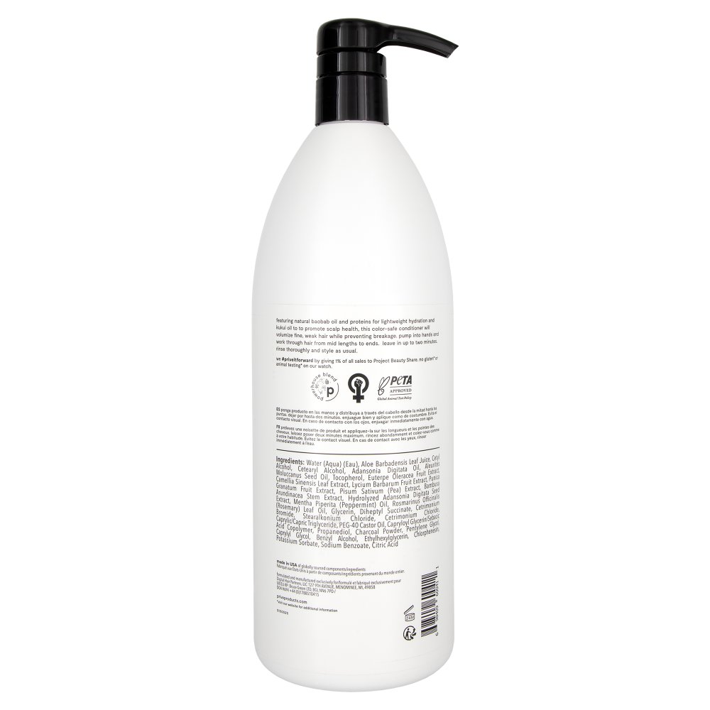 Get full body and lift with the Amp Up Conditioner. This conditioner will strengthen and volumize fine and weak hair to help prevent breakage. It infuses the hair with lightweight hydration and protects hair color vibrancy. The Prive Amp Up Conditioner is guaranteed to deliver healthy, strong, vibrant hair while protecting hair color and never compromising. It builds strength in the hair with the help of Bamboo, which helps to rebuild the hair's strength and structure and leave it with incredible gloss and shine. This conditioner features a powerhouse blend of bamboo, acai, and green tea leaf to protect and invigorate the hair with antioxidants and revitalization. Bamboo is one of nature's strongest naturally occurring minerals and helps build strength and structure in the hair. Acai is rich in omega 3, 6, and 9 fatty acids as well as vitamins A, C, E, and B, which are vital for healthy hair strands. Green Tea Leaf contains polyphenols, vitamin E, and vitamin C, which help boost hair's luster and softness.