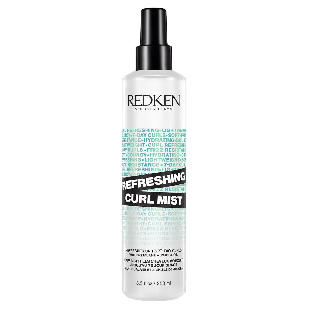 The Redken Refreshing Curl Mist is a lightweight styling spray that is ideal for those with curly and coily hair types. This mist is designed to refresh 7th-day curls and coils without washing your hair. Infused with Squalane and Jojoba oil that are inspired by the hair's natural moisturizing oils, the Redken Refreshing Curl Mist helps to instantly rehydrate and defines curls while providing the hair with frizz reduction. Additionally, this curl refresher is infused with Citric Acid to boost hair's internal strength and to help repair broken bonds within your curls and coils. This lightweight mist will leave your hair feeling natural, no crunch or flaking! The Redken Refreshing Curl Mist is formulated without heavy silicones that coat the hair and weigh it down, making this ideal for all curl types.