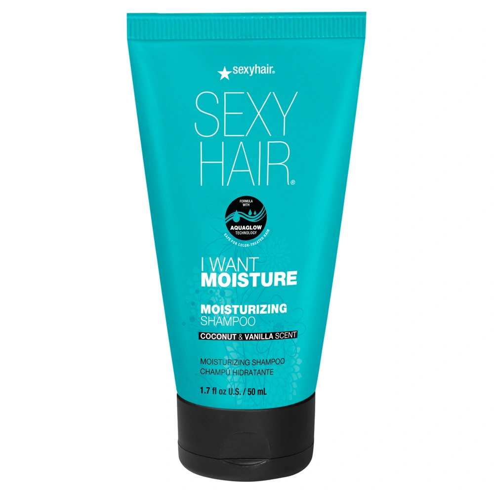 The Sexy Hair I Want Moisture Moisturizing Shampoo is a hydrating and strengthening shampoo that cleanses gently, penetrating deep into the hair's cuticle to nourish and protect. Infused with AquaGlow Technology, this shampoo works wonders on your hair by improving manageability and detangling, and adding moisture, slip, and shine. The Sexy Hair I Want Moisture Moisturizing Shampoo gently cleanses, while leaving hair feeling light, airy, and full of shine, and reduces breakage when used in combination with I Want Moisture Moisturizing Conditioner. It is formulated without harsh sulfates, so it is gentle on your hair and hair color, and is also free from Free of gluten, paraben, and salt. The Sexy Hair I Want Moisture Moisturizing Shampoo leaves you with soft, glowy locks with a delightful fragrance of coconut and vanilla.