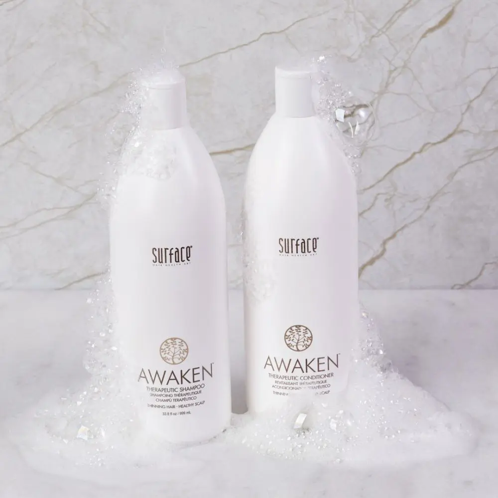 The Awaken Therapeutic system has been specifically formulated to strengthen and rejuvenate thinning hair while maintaining a healthy scalp. Botanical Extracts help decrease DHT, anti-aging mineral ferments aid in cellular renewal, and Vegan Proteins strengthen new hair growth. Perfect to relieve dandruff and psoriasis.