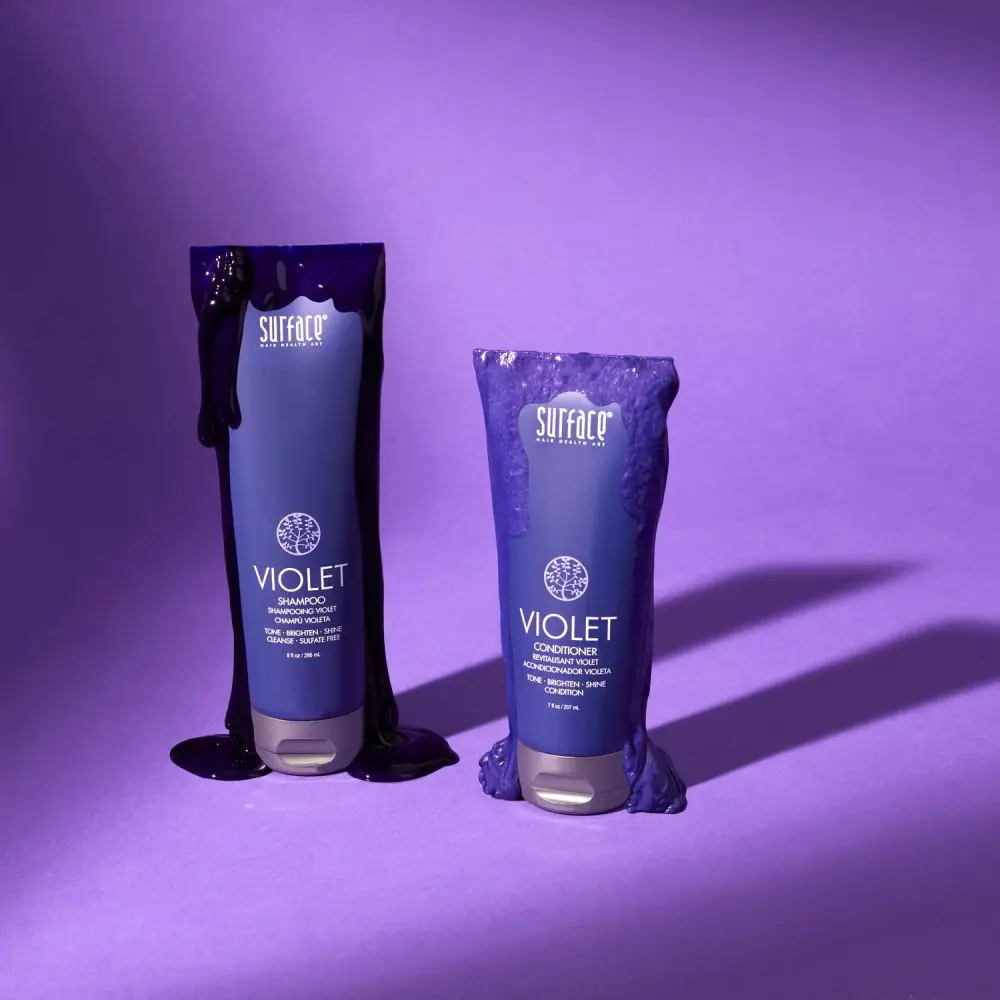 The Surface Violet Shampoo is a toning, brightening, and shine-enhancing shampoo to eliminate warm tones in your stunning blonde hair while gently cleansing away impurities. This shampoo features deep purple pigments that are designed to counteract yellow and orange tones in blonde hair strands. The Surface Violet Shampoo is infused with Maqui Berry, Moringa Oil, and Babassu Oil. Maqui Berry is what gives this shampoo its rich pigment. These deep purple berries not only tone and brighten the hair, but additionally infuse strands with antioxidants that protect and nourish fragile hair strands. Moringa Oil is infused with over 30 antioxidants, 10 vitamins, 18 minerals, and 18 amino acids that deliver free radical and antioxidant protection. Lastly, the Surface Violet Shampoo features Babassu Oil. This oil is considered a super emollient and provides the hair with gentle moisture. This sulfate-free shampoo is the perfect solution for those with blonde and grey hair looking to create stunning and bright hair strands.
