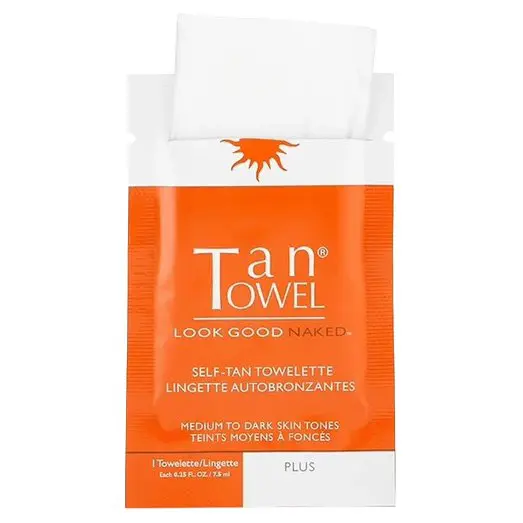 The TanTowel Self Tan Towelettes - Half Body Plus offer an exceptional sunless tan experience suitable for everyone. These towelettes are saturated with a unique clear formula that ensures easy application and a streak-free finish for flawless tanning results every time. The Plus shade is specifically designed for individuals with Medium to Dark skin tones who desire a beautiful summer glow, achievable in just 2-4 hours. Applying the TanTowel Self Tan Towelettes - Half Body Plus takes mere minutes and dries quickly, preventing any color transfer onto clothing. The Half Body size is ideal for touch-ups or targeting specific areas like legs or arms, and can be reapplied for deeper color intensity. Infused with DHA, these towelettes interact with your skin's proteins and amino acids, delivering a natural-looking tan tailored to your skin tone. This self-tanning product is suitable for both face and body and is particularly suited to those with medium to dark skin tones who tan quickly. The convenient medium size of the TanTowel Self Tan Towelettes - Half Body Plus makes it perfect for precise application on desired areas of the body.
