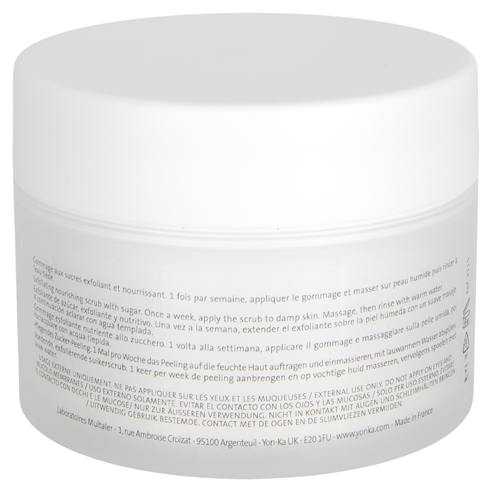 Get pure indulgence with the Gommage Aux Sucres Exfoliating Nourishing Sugar Scrub. A dual-action sugar scrub made up of two sugars harvested from France’s Reunion Island that turns into milk when in contact with water. These sugars polish away skin impurities on the body for a smoother, more radiant appearance. The Yon-Ka Gommage Aux Sucres Exfoliating Nourishing Sugar Scrub features a relaxing floral aroma, a delicate blend of tiare flower and jasmine, for a truly delightful home spa experience for the body and spirit!