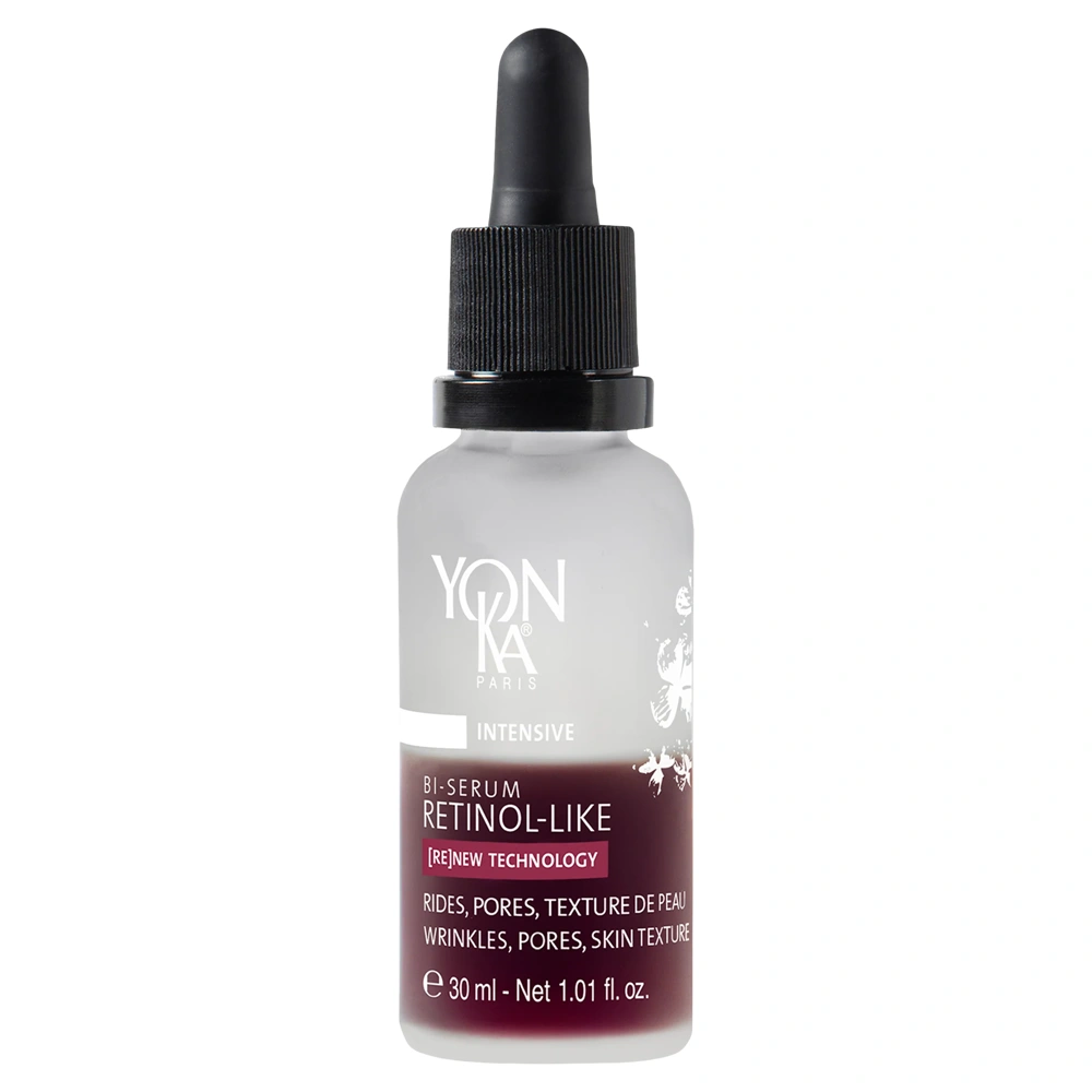 The Yon-Ka Intensive Bi-Serum Retinol-Like is a dual-phase oil and skin serum that is designed to visibly smooth wrinkles, tighten pores, and leave skin texture firmer, without irritation. This serum is ideal for all skin types and is safe for those with sensitive skin. The Yon-Ka Intensive Bi-Serum Retinol-Like features two retinol-like active ingredients that work synergistically within the exclusive (RE)NEW Technology to reactivate skin renewal at both the dermal and epidermal levels. It also includes encapsulated biomimetic microalgae that are high in retinoic acid to stimulate cellular activity and target fibroblasts. The Yon-Ka Intensive Bi-Serum Retinol-Like provides your skin with a retinol-inspired performance with remarkable skin tolerance.