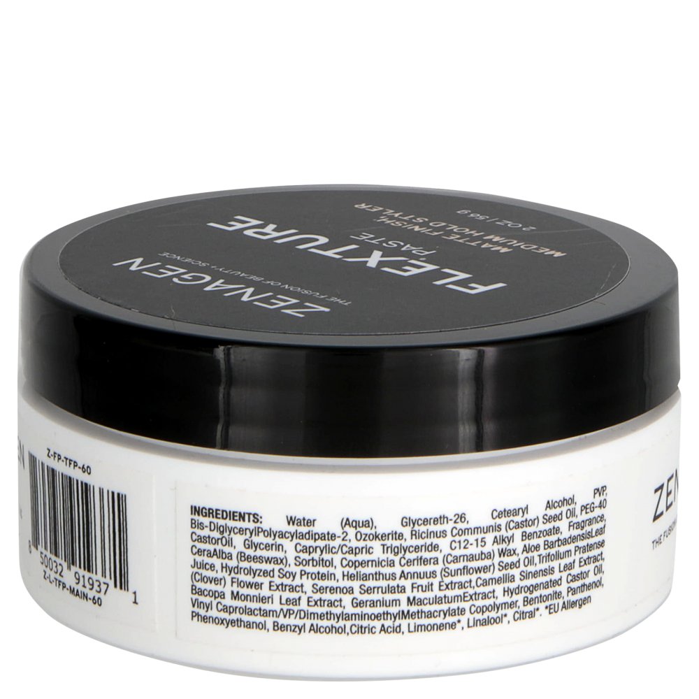 Give your hair a flexible texture and hold with the Zenagen Flexture Paste. This is an innovative microfiber styling paste that will give a flexible texture and hold to any hairstyle. Formulated with natural ingredients like geranium and aloe leaf that naturally moisturize hair while also sealing down your style. The Zenagen Flexture Paste features a medium hold that allows you to create the structure and shape you desire with your hair, while also leaving hair with a matte finish. Flexture Paste nourishes the hair while offering superior styling. Featuring Zenagen's signature scent, this paste can be used by both men and women!