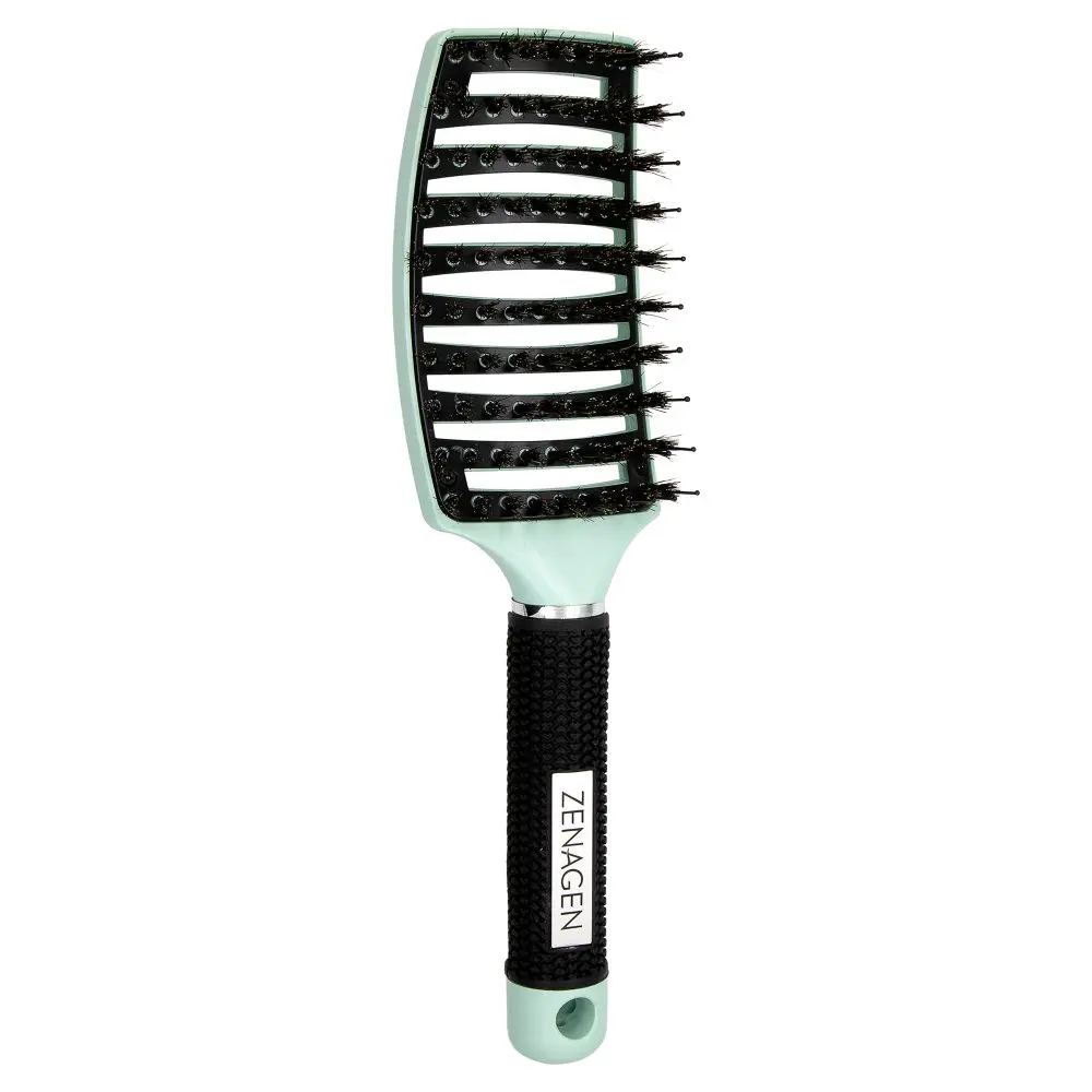 The Zenagen Zen Brush is a scientifically crafted hair brush that is designed to easily detangle hair strands while also stimulating the scalp. This hair brush features precision-engineered plastic pin bristles and natural boar bristles to effortlessly detangle hair strands and stimulate the scalp, targeting hair health at the roots. The Zenagen Zen Brush additionally helps with scalp inflammation and irritation and promotes smoother hair strands with each stroke. This scalp-friendly hair brush also features a built-in magnet, allowing the Zenagen Zen Brush to be easily stored on any metal surface.
